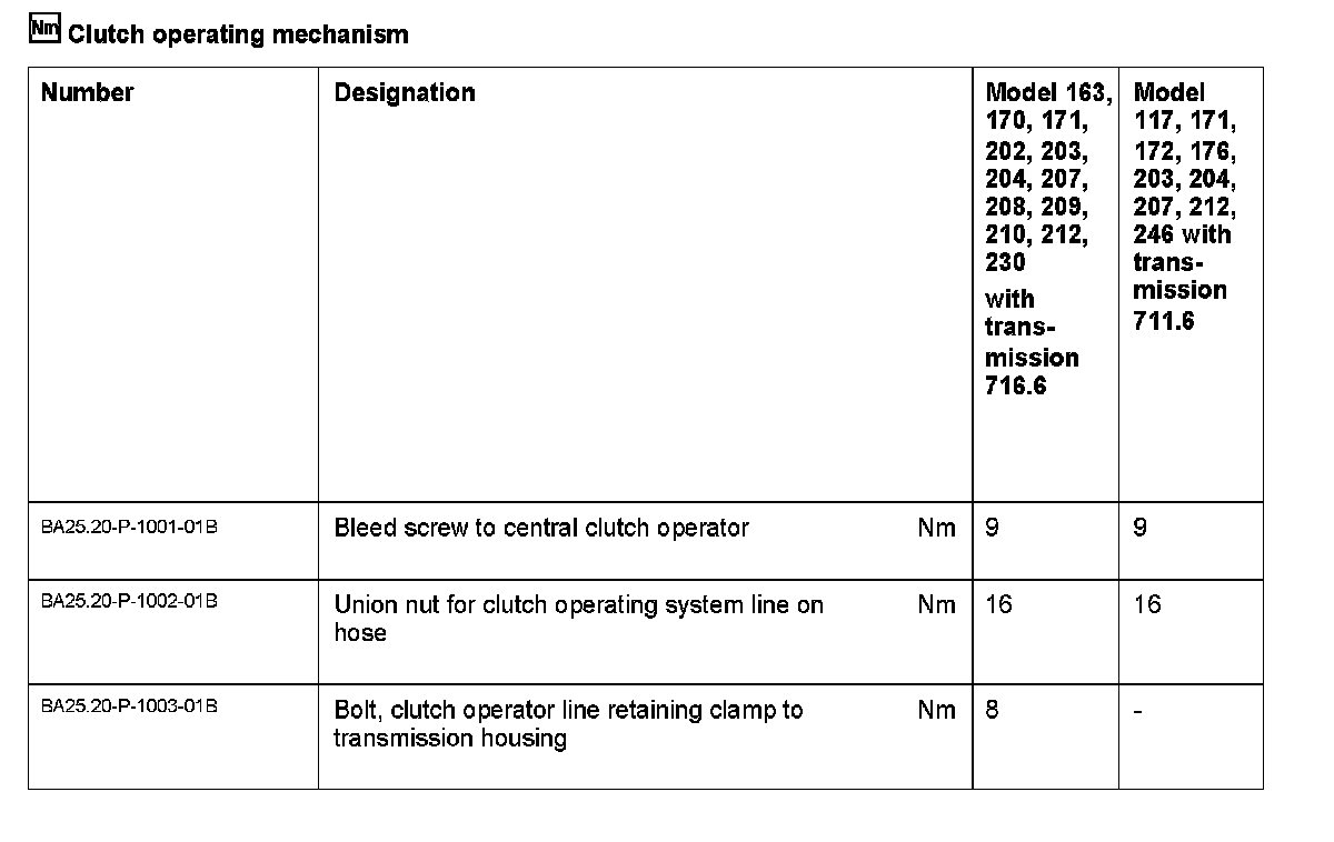 Model 117, 171, 172, 176, 203, 204, 207, 212, 246 with transmission 711.6, model 163, 170, 171, 202, 203, 204, 207, 208, 209, 210, 212, 230 with transmission 716.6
