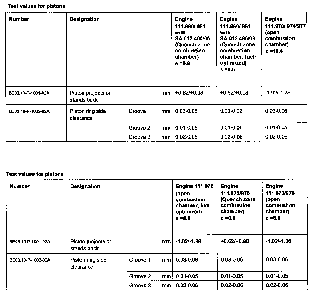 Test Data Pistons: