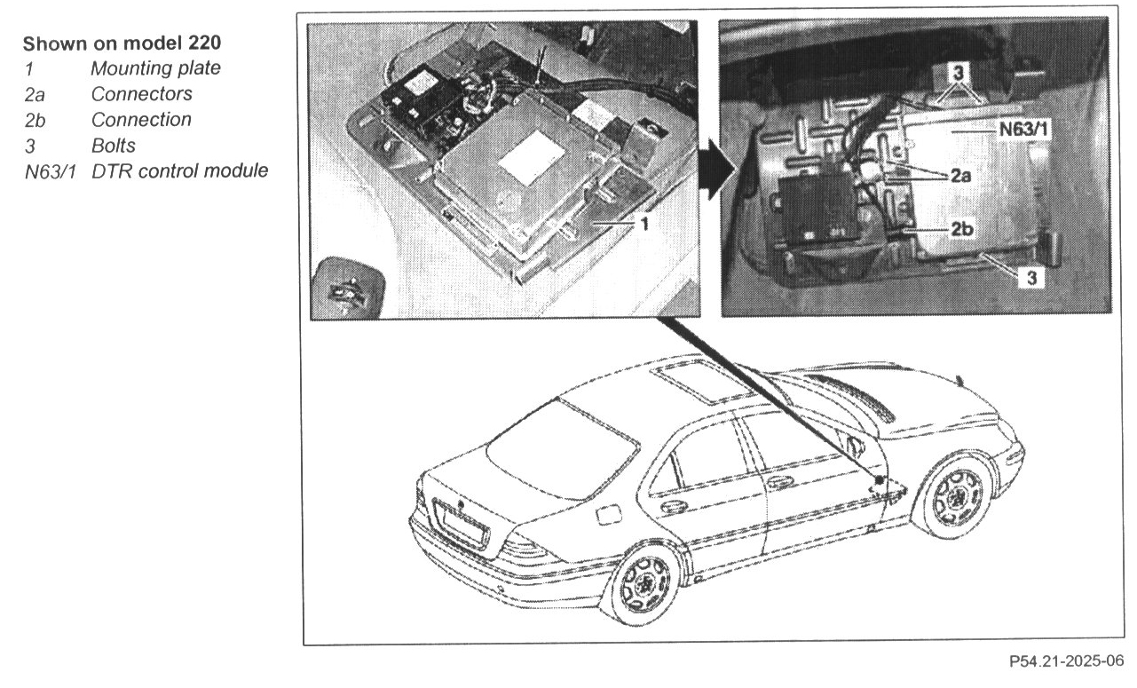 6 Unscrew bolts (3) and remove DTR control module (N63/1) from mounting plate