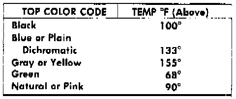 3. Start engine and allow coolant temperature to exceed calibration point of switch as indicated in chart in Fig. 50, according to color code.