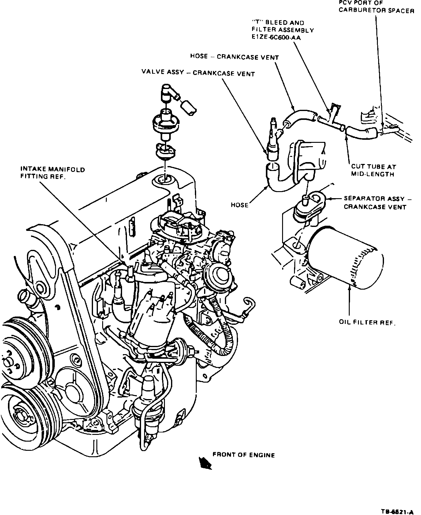 14. Cut tube at mid-length and install "T" bleed and filter assembly part number E171-6C600-A (Figure 4)