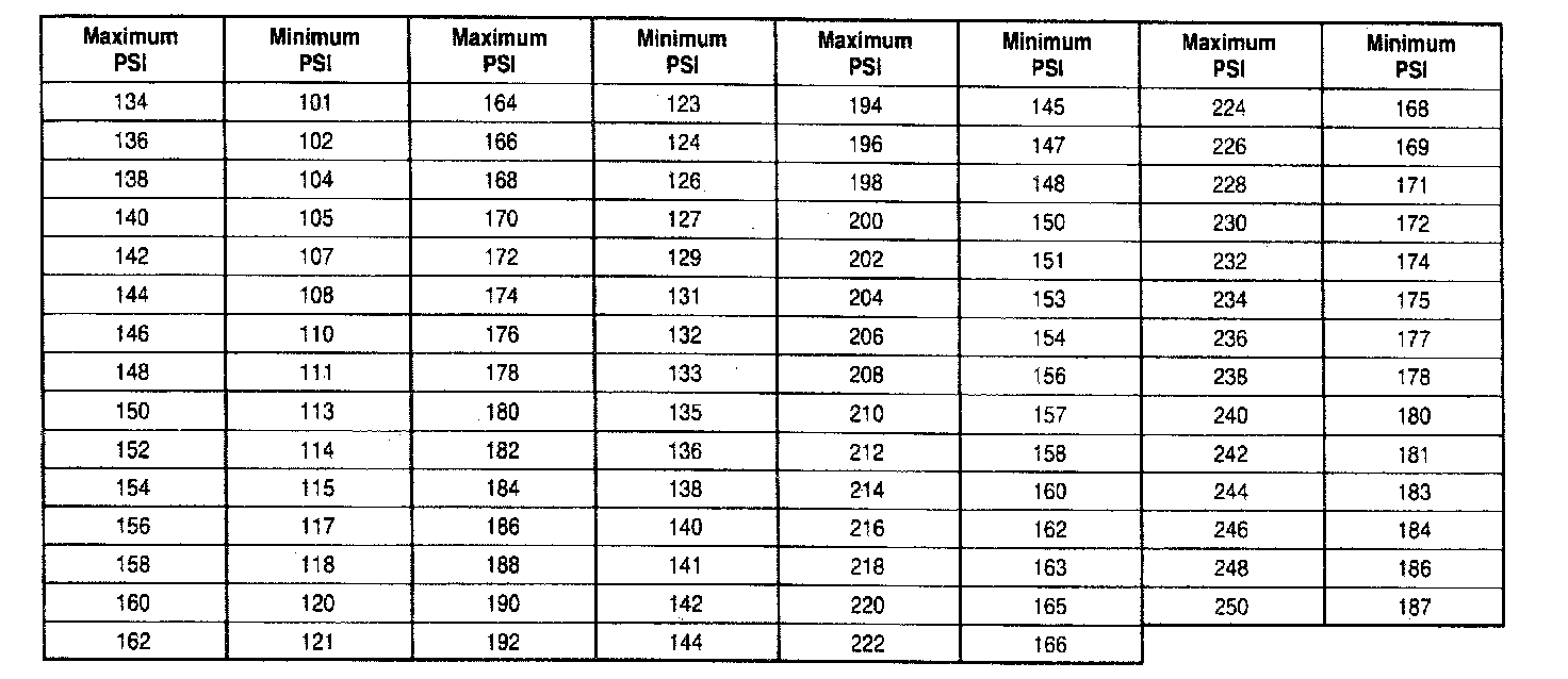 Compression Pressure Limit Chart: