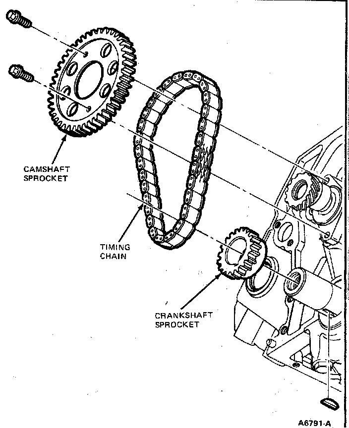 30. Remove the camshaft sprocket, crankshaft sprocket and the timing chain.