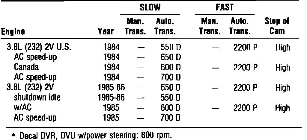 Idle Speed Specifications:
