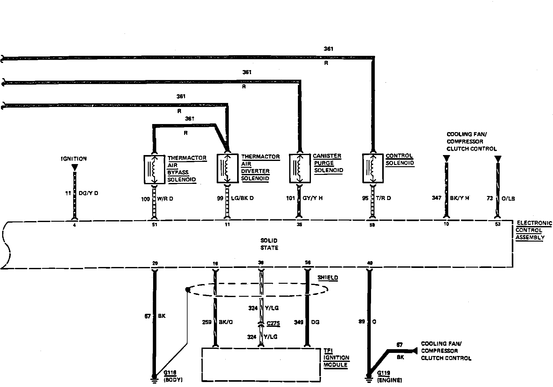 Fig. 13 Electronic Engine Control (E.E.C. IV) System Wiring Circuit (Part 3 of 3). 4 Cylinder Except Turbocharged Engine: