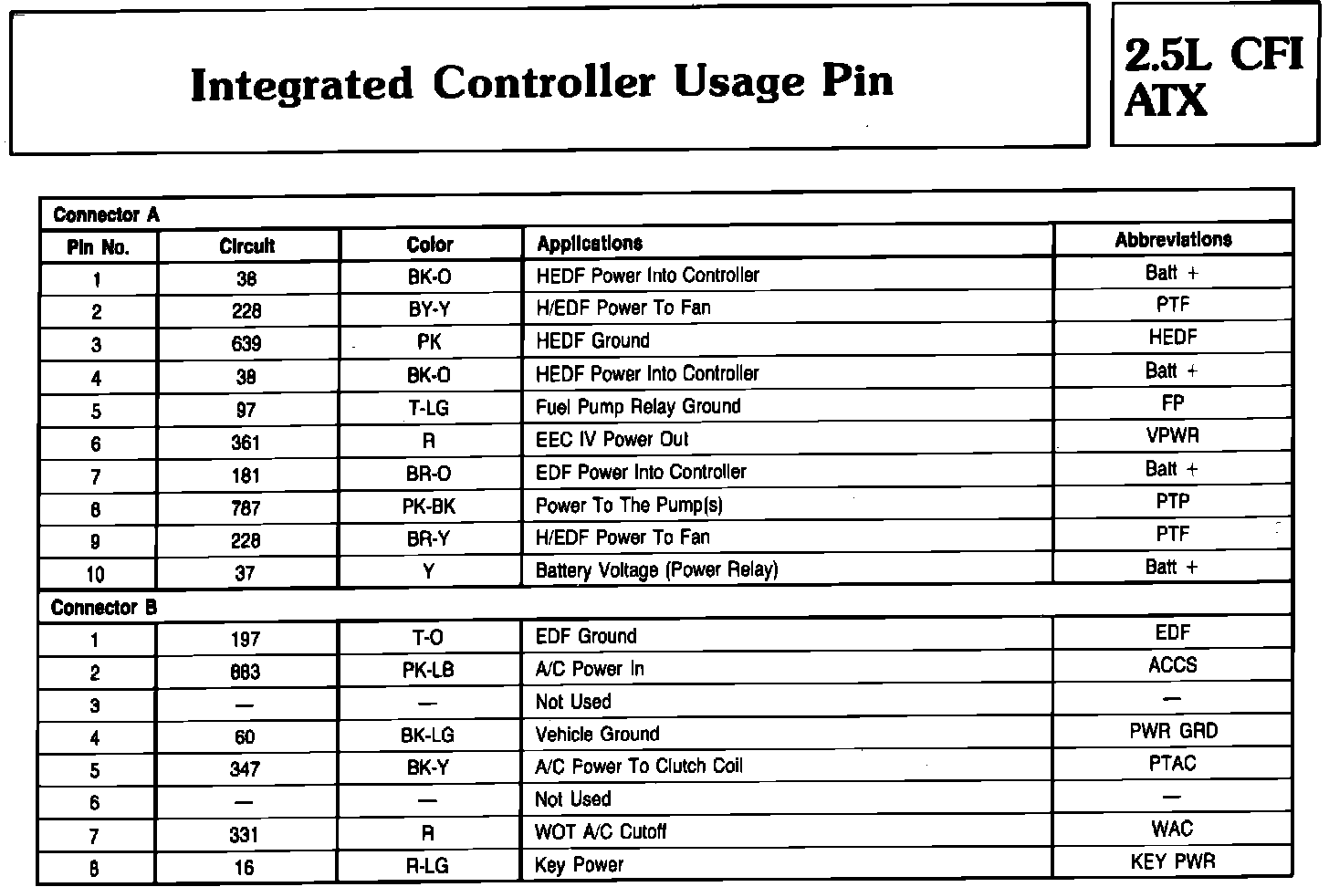 Pin Usage - Integrated Controller W/CFI & MTX:
