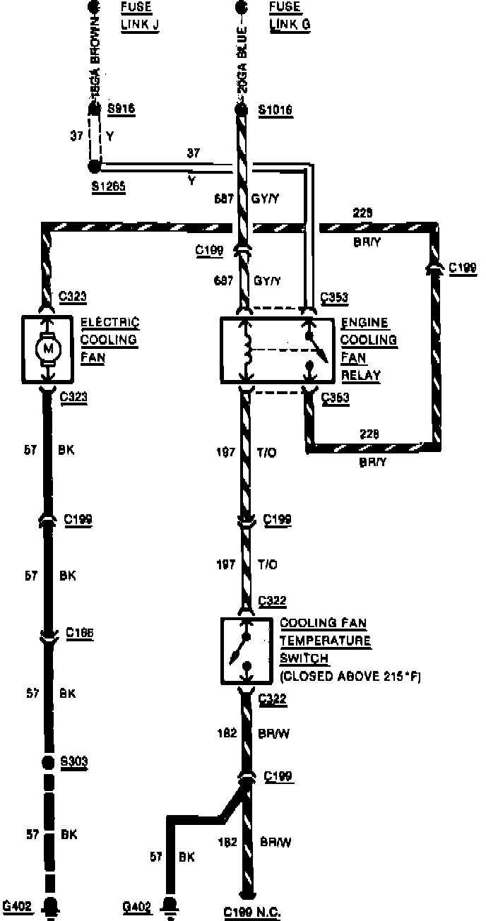 Fig. 40 Cooling Fan Wiring Circuit. Tempo & Topaz W/Gasoline Engine, Less A/C: