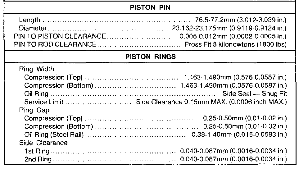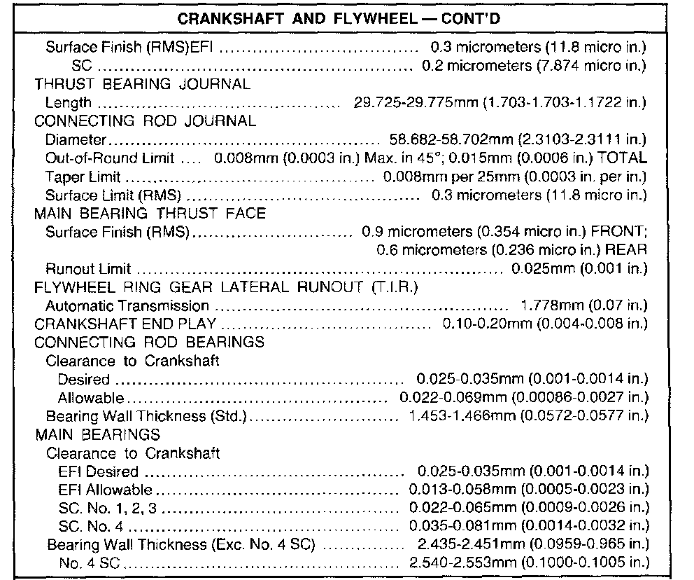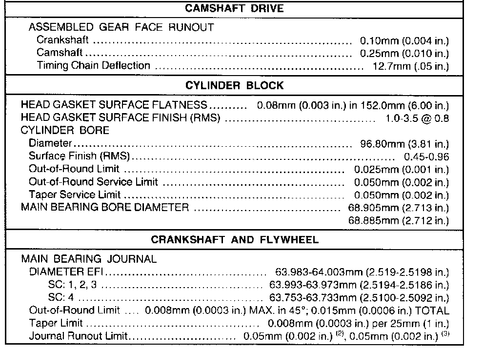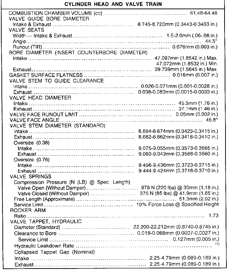(1) 20-200 seconds to leakdown 3.18 (0.125 in) with 225 Newtons (50 pounds) load and tappet filled with leakdown fluid.