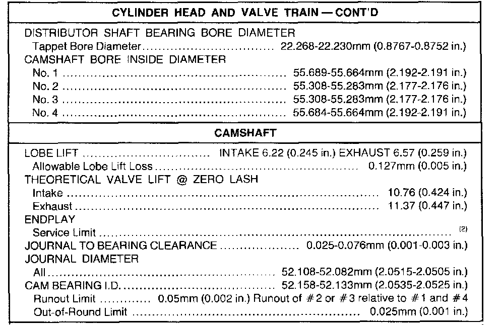 (2) No end play. Camshaft is restrained by spring.