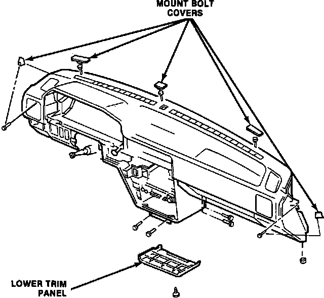 n. Remove lower trim panel located beneath radio, then remove instrument panel mounting bolt covers, Fig. 12.
