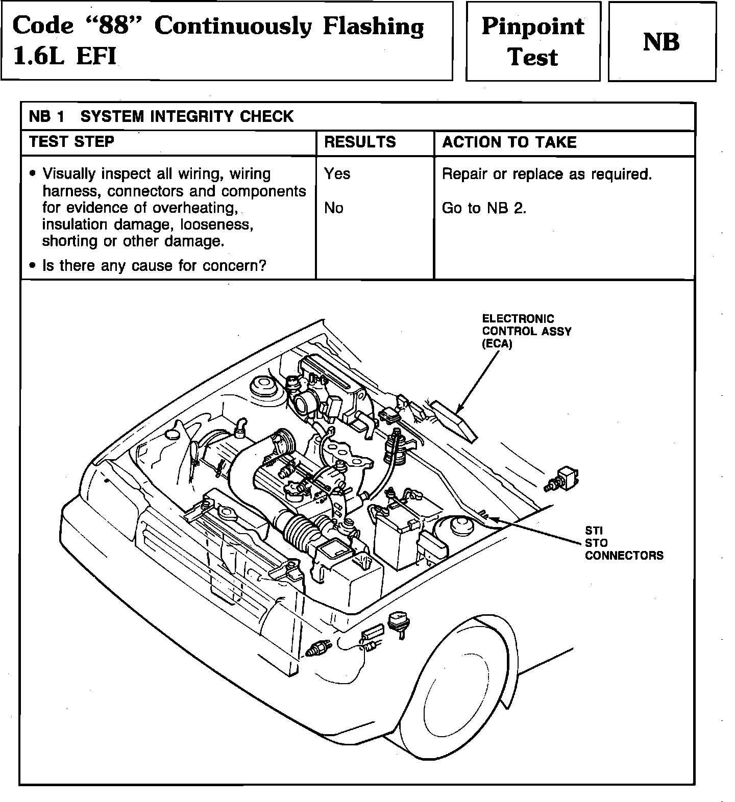 Pinpoint Test NB1 - Code "88" Continuously Flashing:
