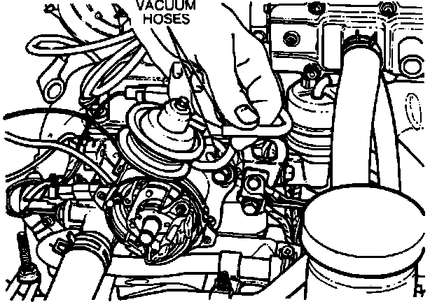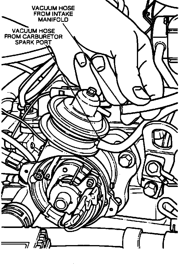 4. Connect the vacuum hose from the carburetor spark port to the lower chamber nipple on the vacuum advance. Connect the manifold vacuum hose to the upper chamber.