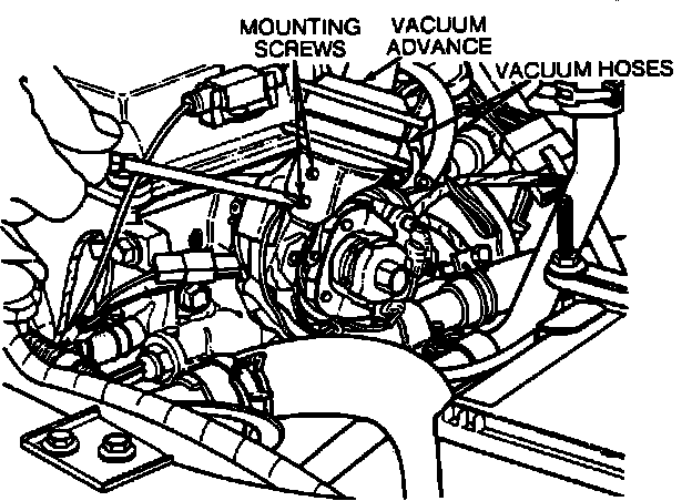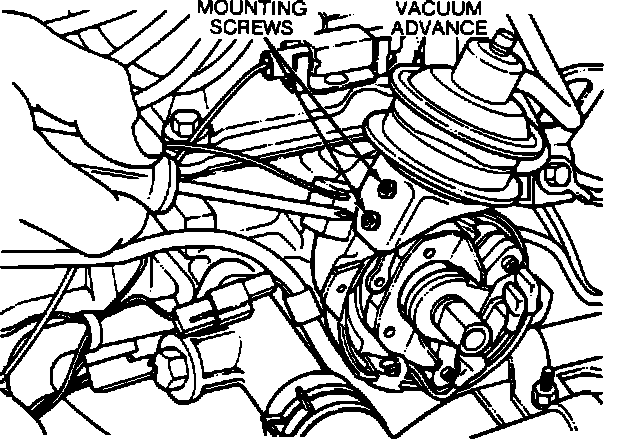 2. Secure the vacuum advance to the distributor housing with two mounting screws.