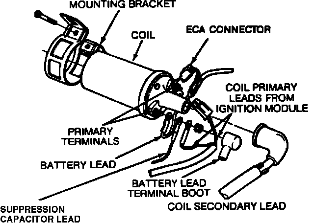 1. Slide the coil into the mounting bracket while positioning the primary terminals for convenient connection tighten the mounting bracket clamp screw.