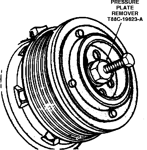 2. Using tool T88C-19623-A or equivalent, Fig. 1, remove pressure plate.
