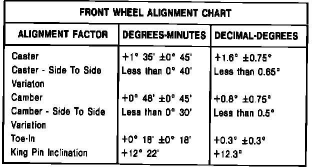 Front/Rear Alignment Specifications - Revision