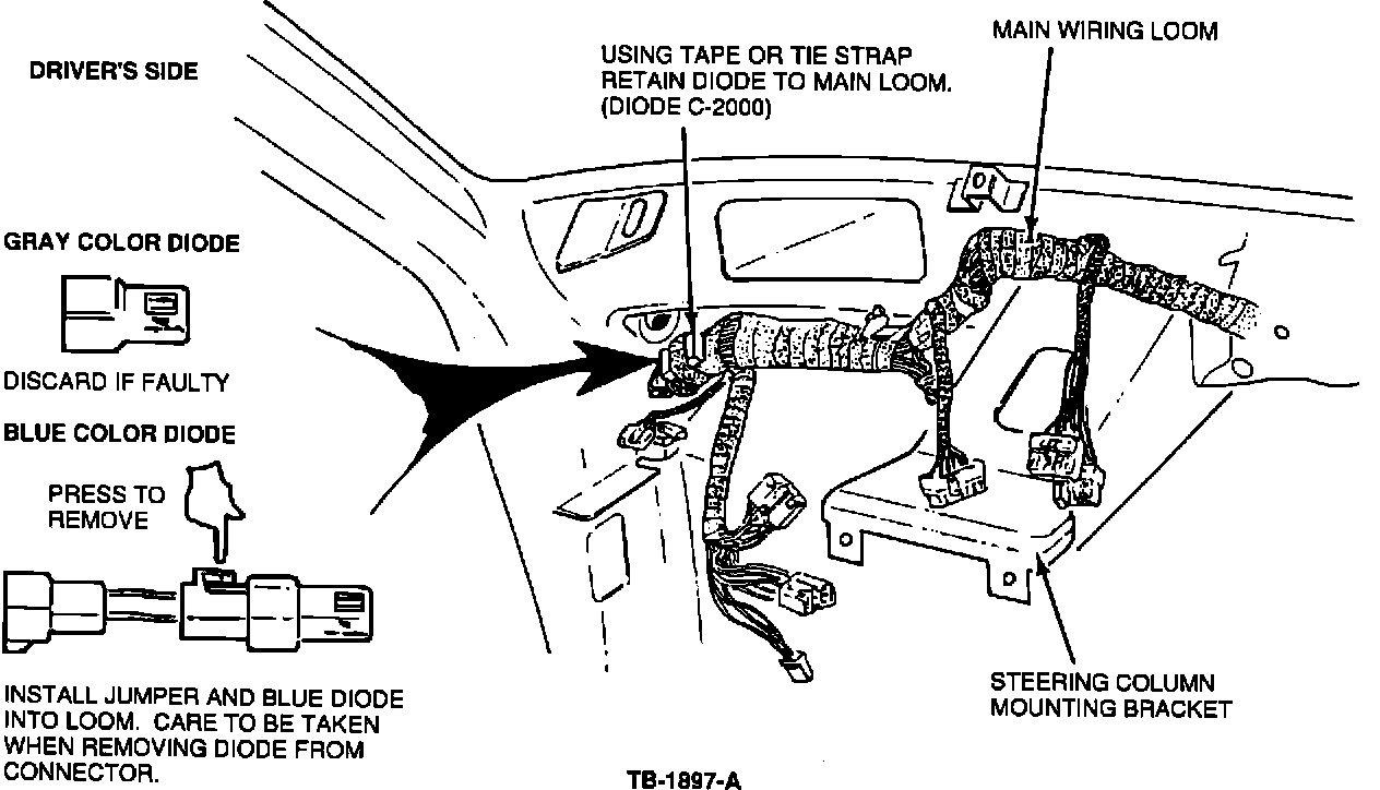 LINCOLN-MERCURY: 1991 CAPRIISSUE: Diodes attached to the main wiring harness (14401) and the engine control wiring harness (12A522) may be damaged if external power sources, such as battery chargers, are connected incorrectly.