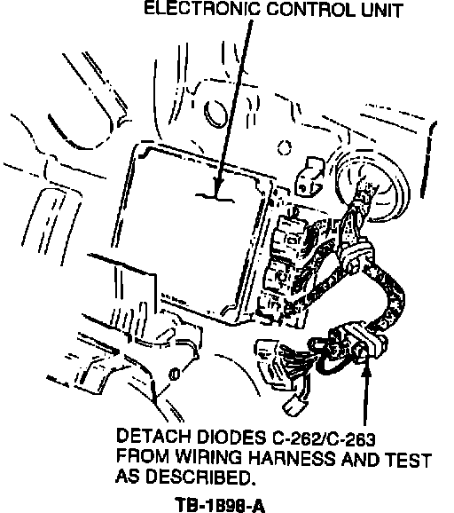 2. Attach the diode assembly to the main wiring harness using electrical tape or a cable tie. Be sure the diode is firmly held to prevent rattles, etc.
