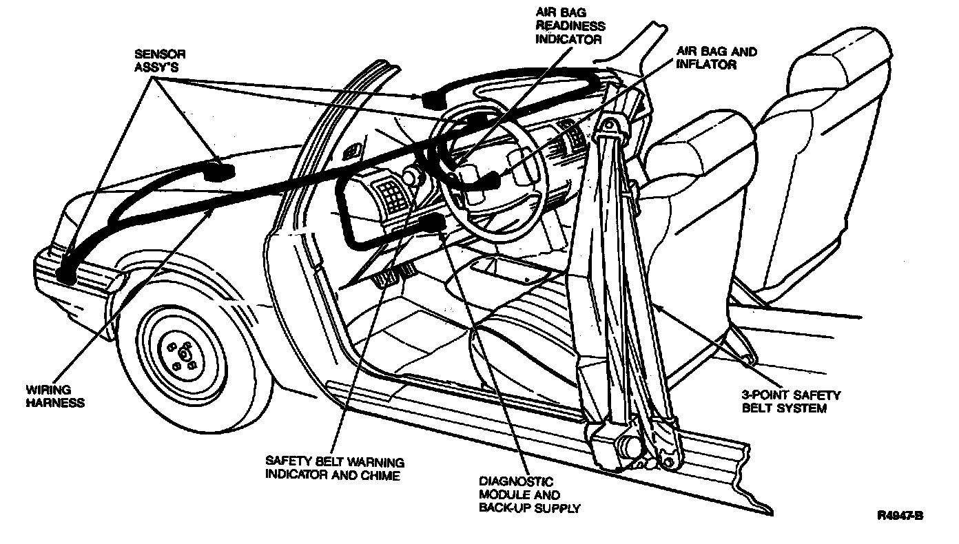 The air bag readiness indicator is the prime means of determining the air bag system condition. However, a series of five sets of five tones will be heard if the readiness indicator is out and a fault occurs in the system. This also means that the Supplemental Driver Air Bag System is in need of service. The tone pattern will repeat periodically until the fault and indicator are serviced. Unless serviced, the Supplemental Driver Air Bag Restraint System may not function properly in the event of an accident.