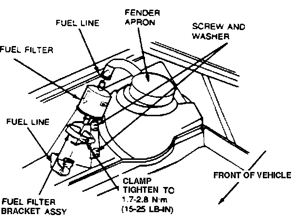 1. Install fuel filter into the bracket, ensuring proper direction of flow.