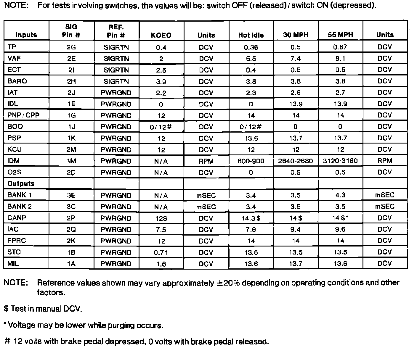 Normal Scan Data Values (Includes PID's)