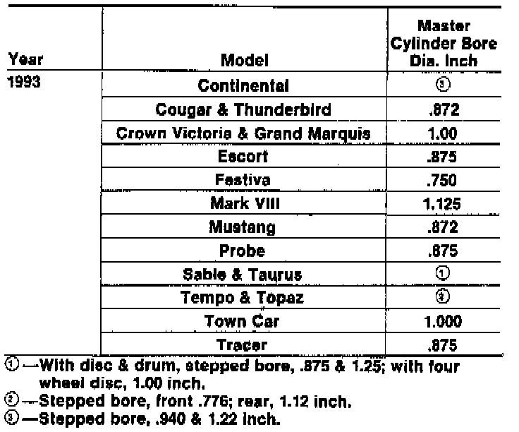Master Cylinder Specifications:
