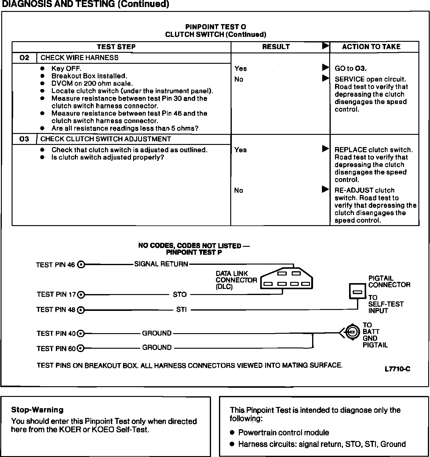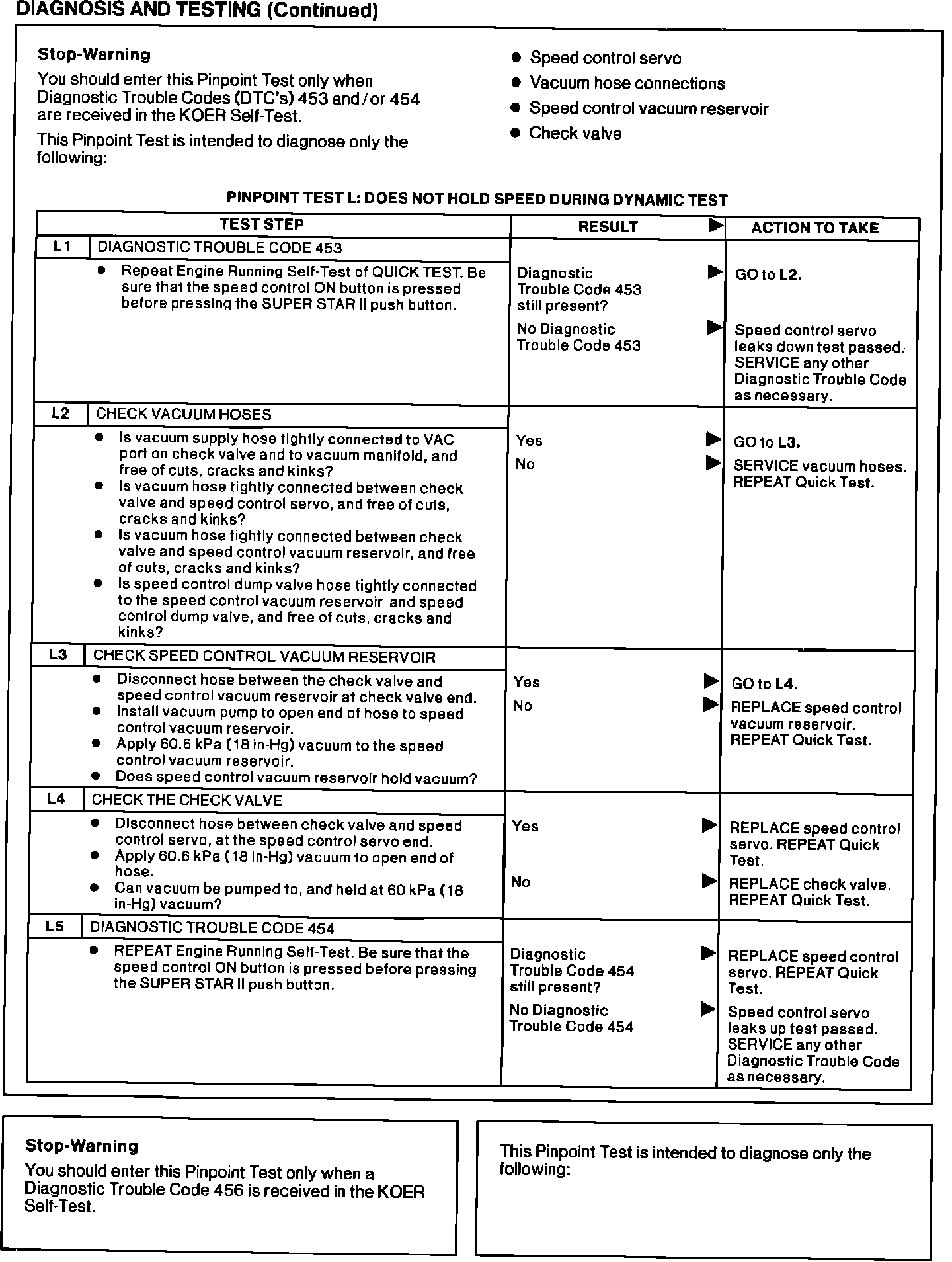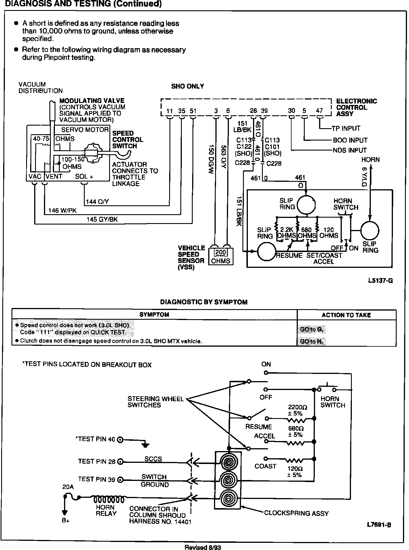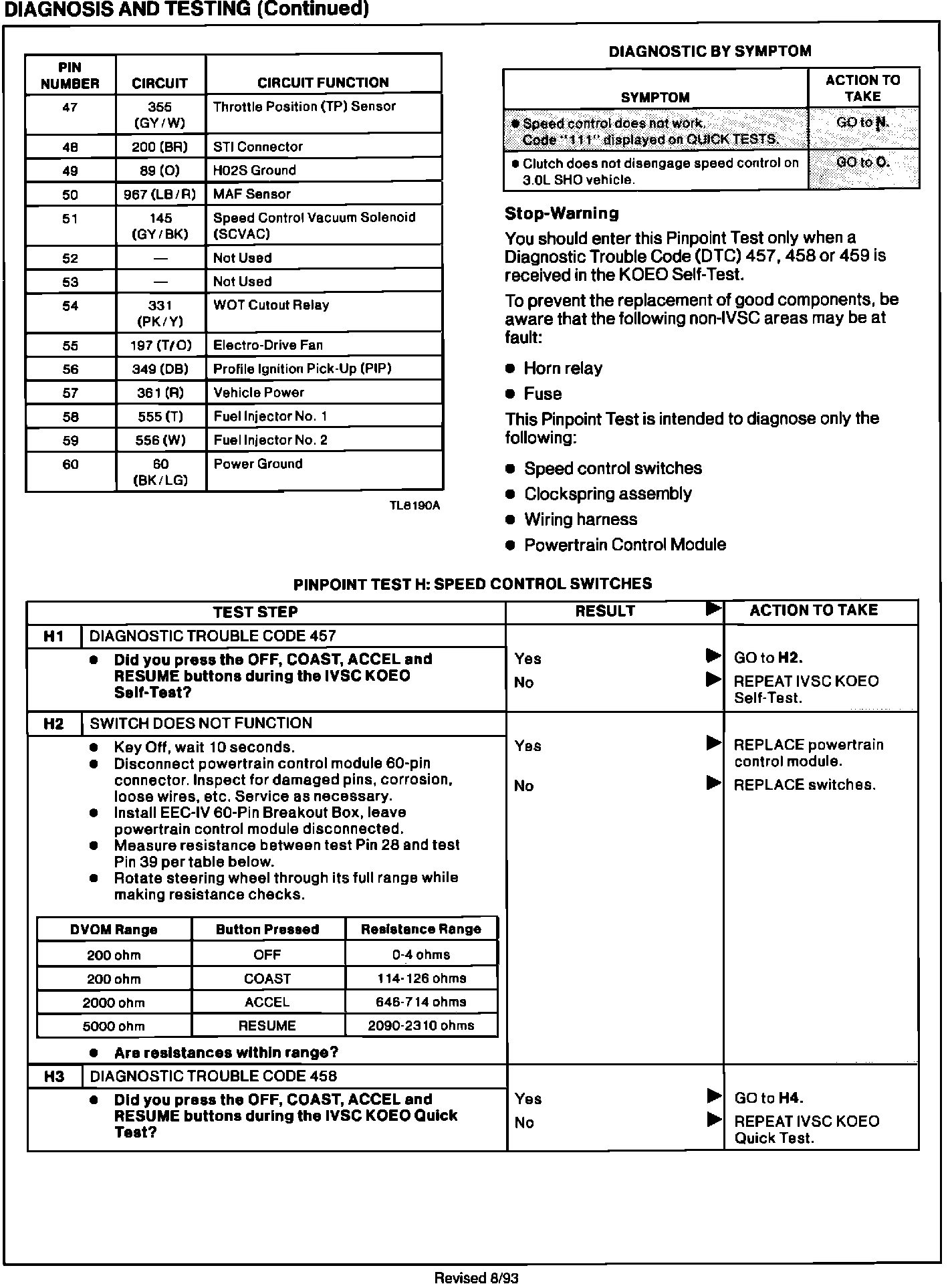 ^ SERVICE MANUAL - 1993 - PAGES 10-03A-25 AND 10-03A-32 - SPEED CONTROL "DIAGNOSTIC BY SYMPTOM" CHART AND PINPOINT TEST STEP G1 REVISED