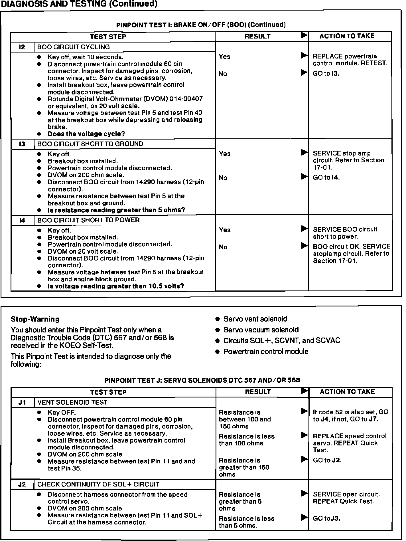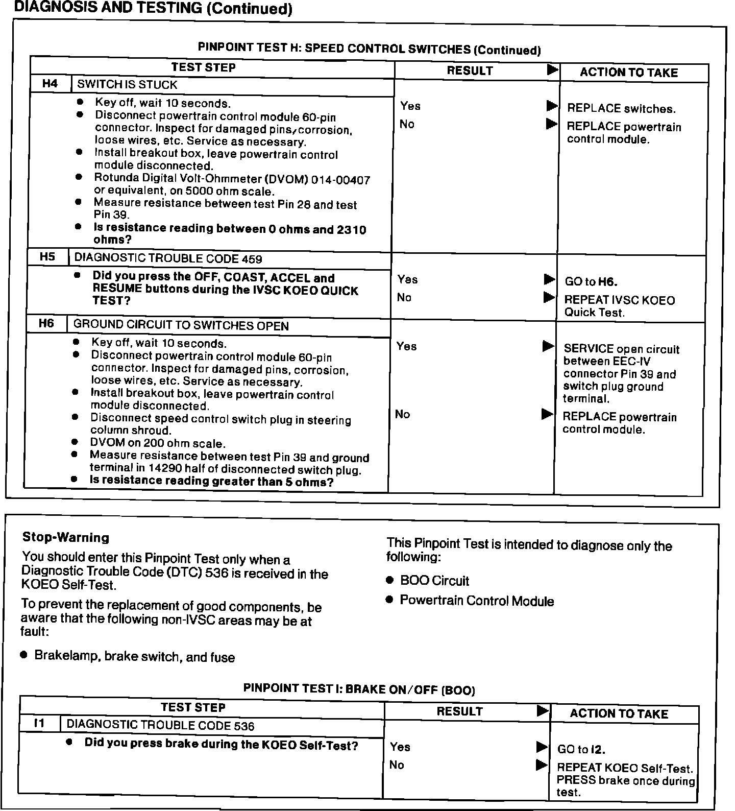 PINPOINT TESTS A THROUGH H, AND TEST 0, SHOWN ON PAGES 10-03A-25 THROUGH 34 IN THE 1993 TAURUS/SABLE SERVICE MANUAL, HAVE BEEN RENUMBERED AS PINPOINT TESTS H THROUGH P, AND ARE INCLUDED WITH THIS TSB ARTICLE FOR CLARITY.