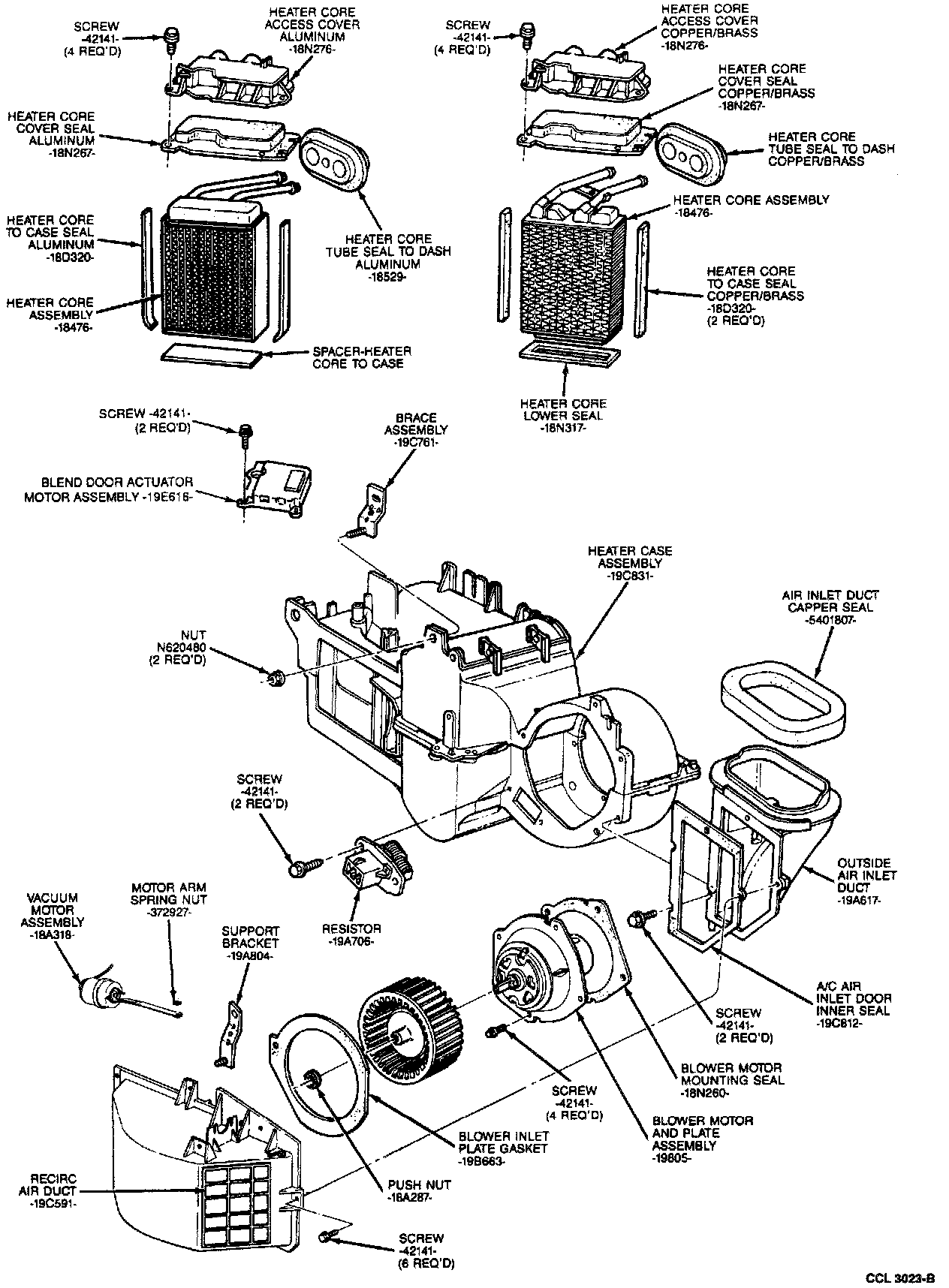 5. Remove the recirculating duct from the heater assembly, lowering the recirculating duct from between the instrument panel and the heater case.