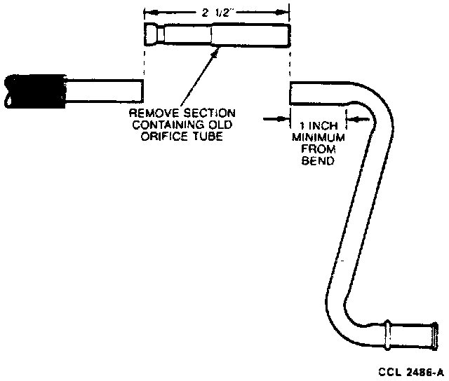 5. Cut a 63.5 mm (2-1/2 inch) section from tube at orifice tube location. Do not cut closer than 25.4 mm (1 inch) from the start of a bend in the tube.