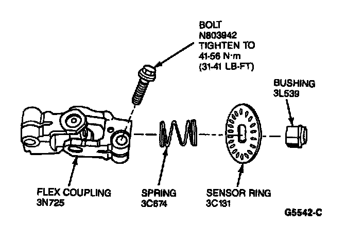 3. Install sensor ring, bushing, spring and flex coupling to steering shaft. Tighten pinch bolt to 41-56 N.m (31-41 lb-ft).