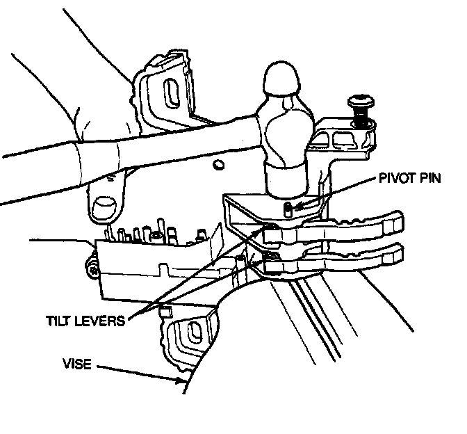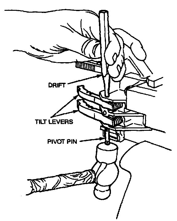 6. Install one tilt lever spring and arm into housing using a drift to hold in place.
