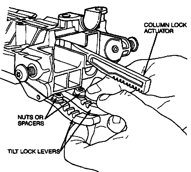 10. Position tilt spring on lock housing. With assistant, install lock housing and pivot bolts. Tighten to 20-28 N.m (14-20 lb-ft).