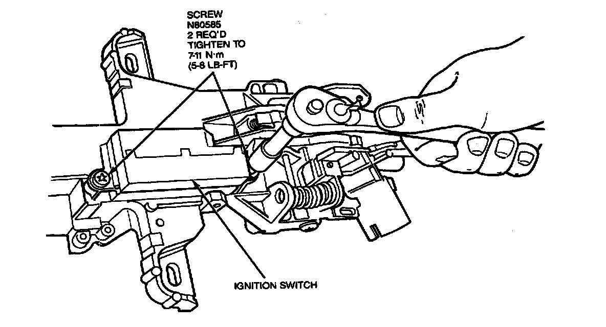 14. Install ignition switch. Align pin from switch with slot in lock/column assembly. Position slot in lock / column assembly with index mark on casting. Tighten two retaining screws to 7-11 N.m (5-8 lb-ft).
