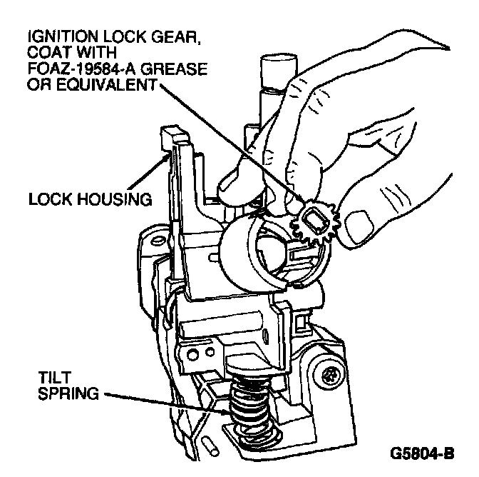 15. Install ignition lock gear. Coat gear with FOAZ-19584-A grease or equivalent.