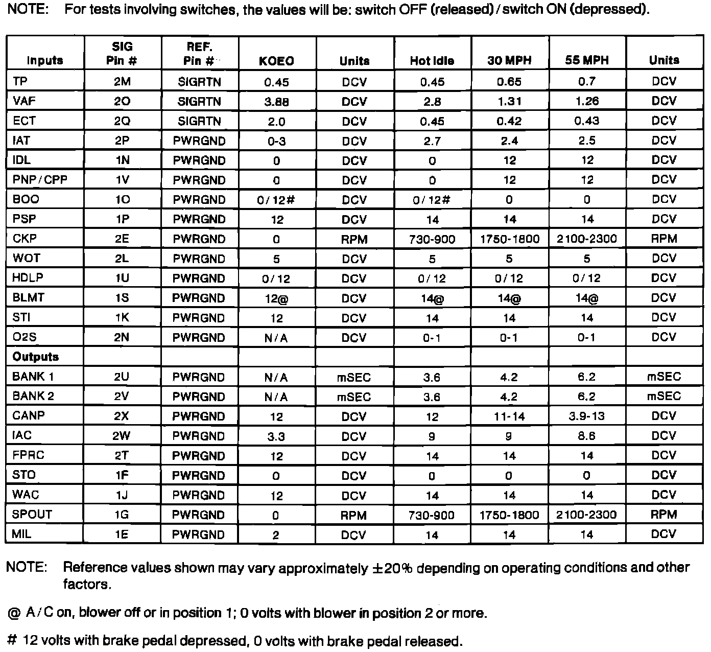 Normal Scan Data Values (Includes PID's)