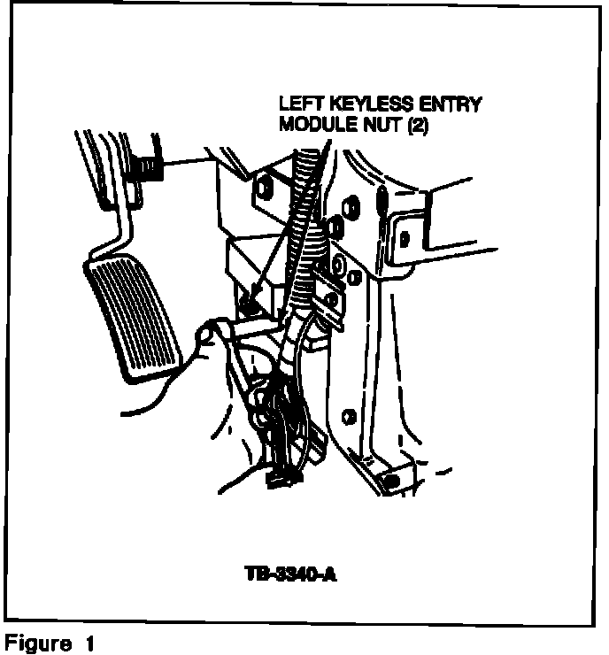 3. Remove the two (2) left keyless entry module attaching nuts, Figure 1.