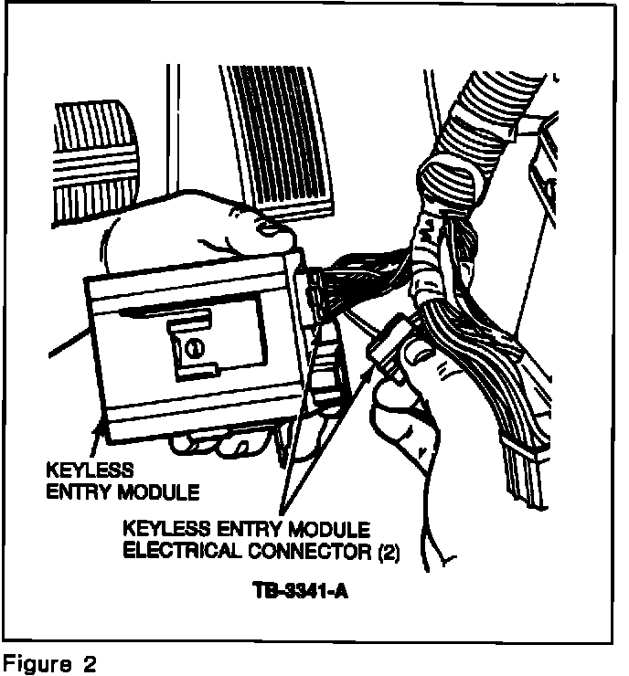 5. Disconnect the two (2) keyless entry module electrical connectors, Figure 2.