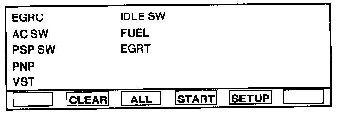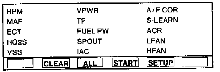 The number keys on the NGS Scan Tool allow you to select one of the following highlighted options that appear at the bottom of the screen display: CLEAR, ALL, START and SETUP.