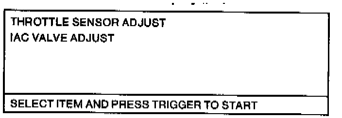 Turn the menu dial to highlight the item in question (item to be adjusted). For example, THROTTLE SENSOR ADJUST. Press TRIGGER. Screen Display # 14 will appear.