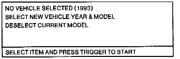 Turn the menu dial to highlight SELECT NEW VEHICLE YEAR & MODEL. Press TRIGGER. Screen Display #3 will appear.