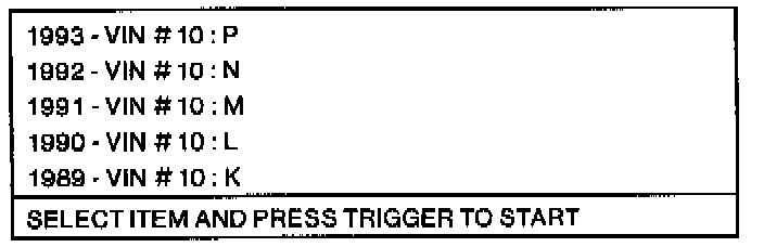 1993 - VIN # 10: P will be the first item on this screen and it will be highlighted. Press TRIGGER. Screen Display #4 will appear.