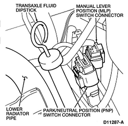 2. Disconnect the Manual Lever Position (MLP) switch and the Park/Neutral Position (PNP) switch connectors.