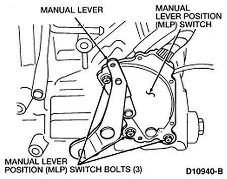 6. Remove the three Manual Lever Position (MLP) switch bolts from the MLP switch.