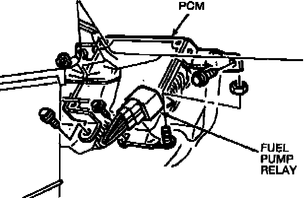 6. Remove nut from fuel pump relay bracket and separate relay from PCM.