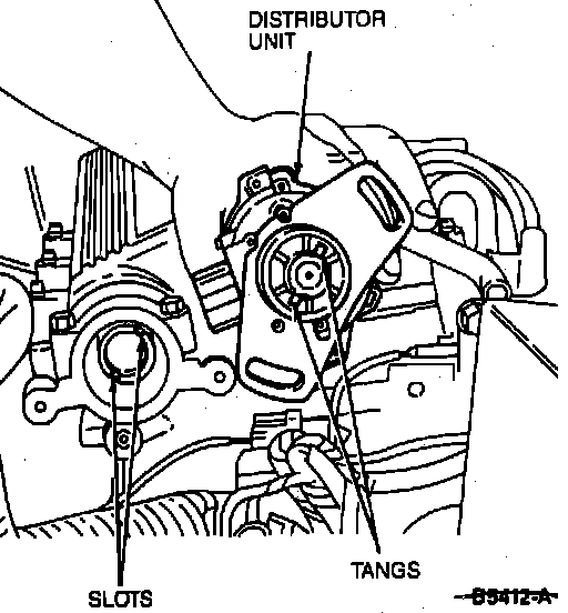 NOTE: Distributor can only be installed in one direction. When installing distributor, ensure that offset drive tangs engage with the camshaft slots.