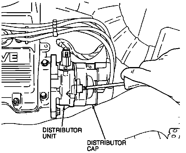 5. If distributor is not being replaced, scribe a reference mark across distributor base flange and cylinder head. Note rotor position for installation reference.