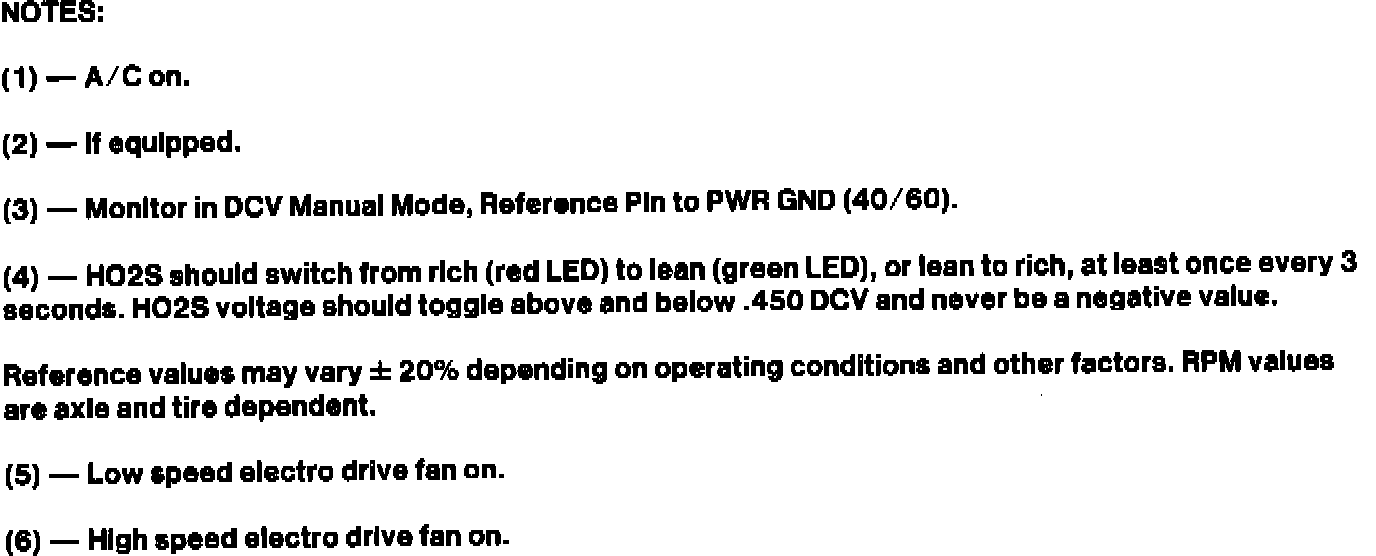 - Reference values are based on engine at normal operating temperature.