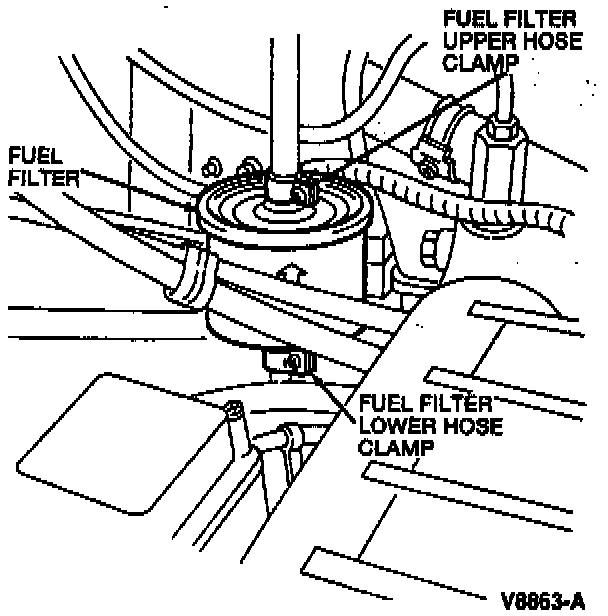 NOTE: Plug the fuel hoses after disconnecting them from the fuel filter to prevent fuel system contamination and leakage.