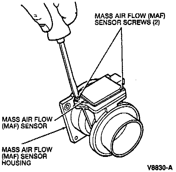5. Remove the two Mass Air Flow (MAF) sensor screws, and then remove the MAF sensor from the MAF sensor housing.